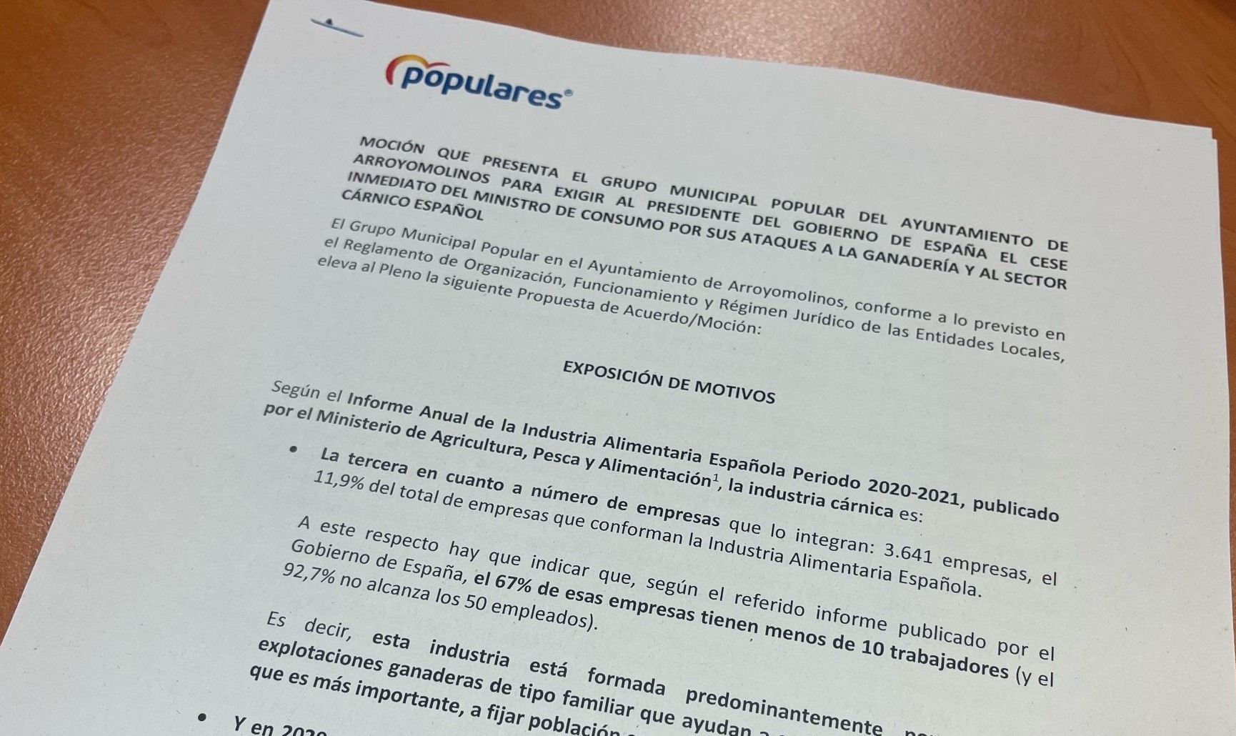 Presentaremos una moción en el próximo Pleno Municipal, para pedir a Sánchez que respete la independencia de las instituciones del